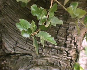 This evergreen oak has light gray, spreading trunks and a rounded crown of dark foliage. It grows in moist canyons throughout much of California and can live over three hundred years. The indigenous Pomo used the acorns to relieve coughs and sore throats. Wedges made of canyon oak were used by the pioneers to split redwood. Oak Trees and their shrub relatives breed promiscuously. You'll often find hybrid forms with mixed traits of several species.